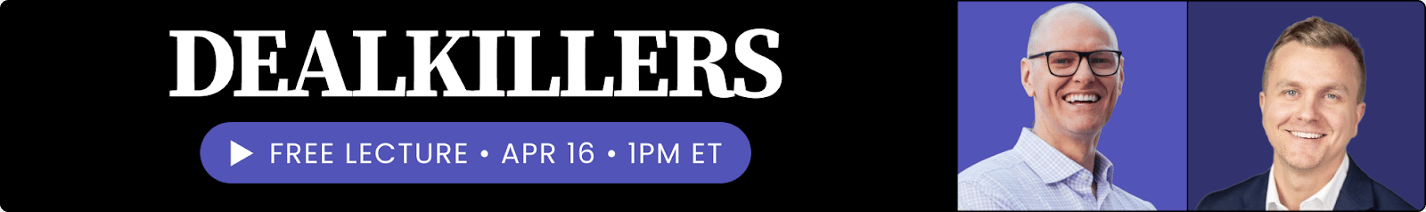 P.S. Don’t forget to grab your seat for my free lecture on financial dealkillers. Learn the business buying mistakes you can’t afford to make (or if you can afford them, they still suck really bad). RSVP here.